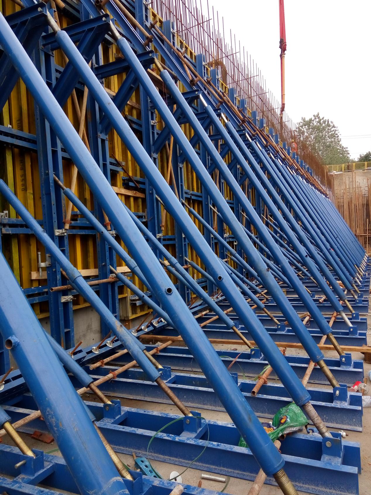 تم تصميم الدعامة الفولاذية أحادية الجانب للجدار الاستنادي الخرساني لصب الخرسانة من جانب واحد. إنه يوفر حلاً فعالاً لقوالب صب الخرسانة ويستخدم على نطاق واسع في الطوابق السفلية ومحطات معالجة مياه الصرف الصحي ومترو الأنفاق وحماية منحدرات الجسور. نظام الدعامة سهل التركيب ولا يتطلب تصميمه قضبان ربط عبر الجدار، مما يضمن أن الجدار مقاوم للماء بعد الصب.