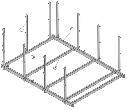 ①قوس وحدة التحكم ②دعامة قطرية ③قياسي | جهاز تحمل | منصة التفريغ ①الشعاع الرئيسي ②الشعاع المتقاطع رقم 1 ③الشعاع المتقاطع رقم 2 ④قياسي |